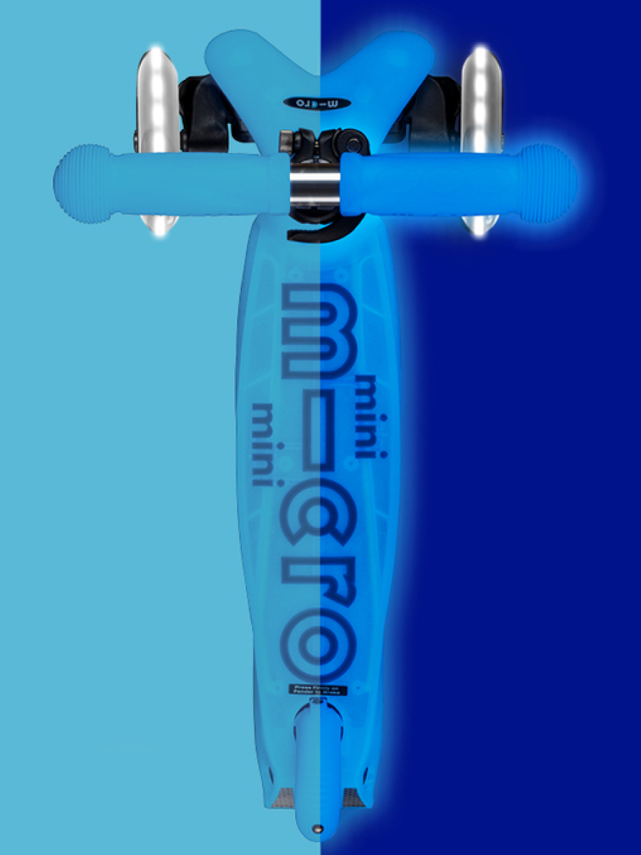 Волшебство Mini Micro Deluxe Glow LED Plus усиливается благодаря 2 дополнительным LED лентам, встроенным в деку. LED полосы, работают от движения заднего колеса, создавая яркое свечение, которое повышает как уникальность, так и безопасность самоката. Cветодиодные колеса дают дополнительное свечение во время катания.