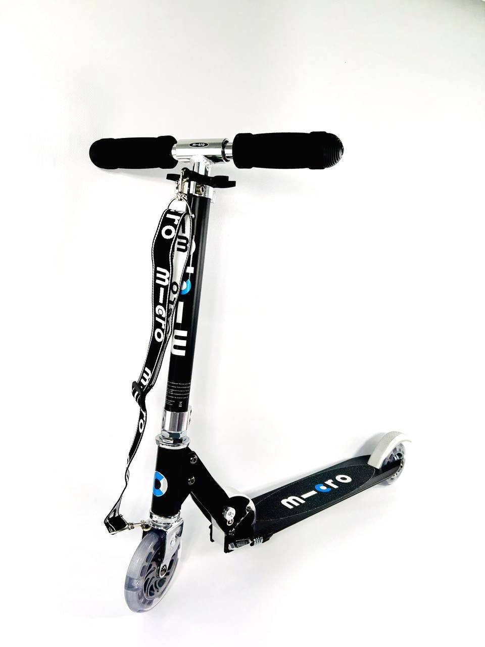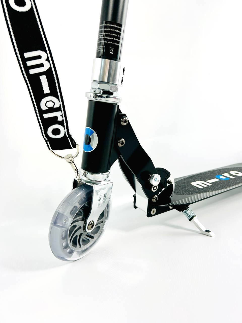 Дека самоката компактная и оснащена противоскользящим покрытием. У самоката есть крепления для ремня переноски. Micro Sprite LED - это модель самоката со светящимися колесами. Самокат легкий и компактный. Подходит детям и взрослым потому что он выдерживает нагрузку до 100 кг.