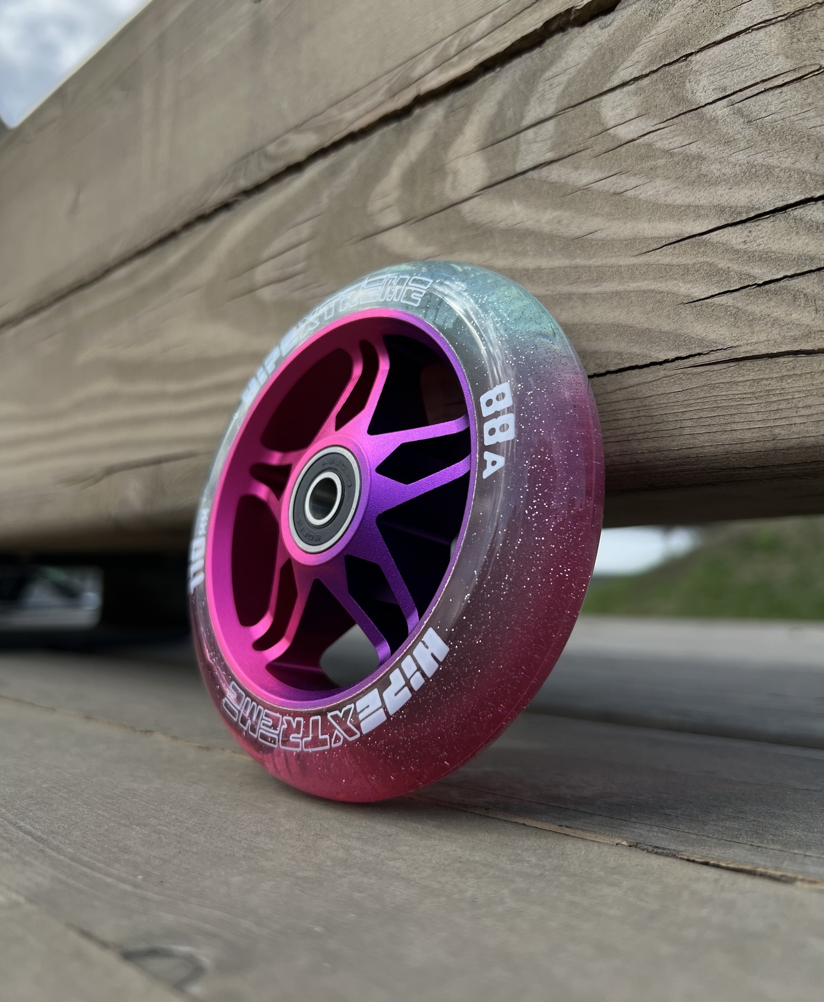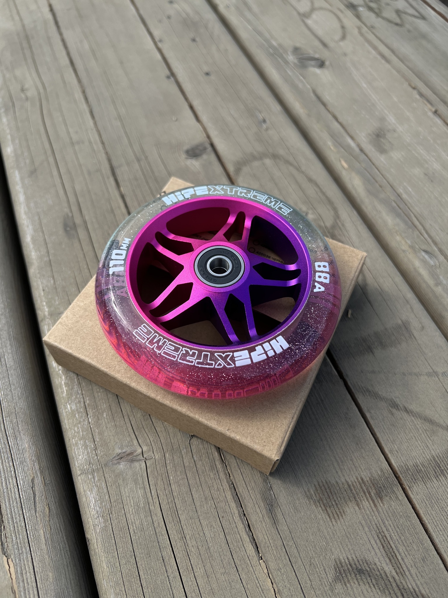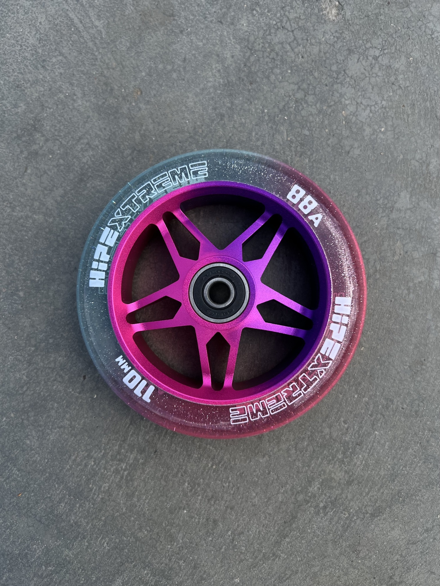 Стильные, легкие и прочные пятиспицевые (5 ти спицевые) колеса от бренда HIPE xtreme, имеют уникальный дизайн в форме звезды. В колесо установлены качественные подшипники ABEC9, которые отлично катят. А гелик (полиуретановая оболочка) с высокой степенью отскока будет отлично гасить удары. Подходят под любые вилки, подходят под хомут и черный руль. Идеально для самоката для мальчиков, девочек и подростков, а так же профессионалов.