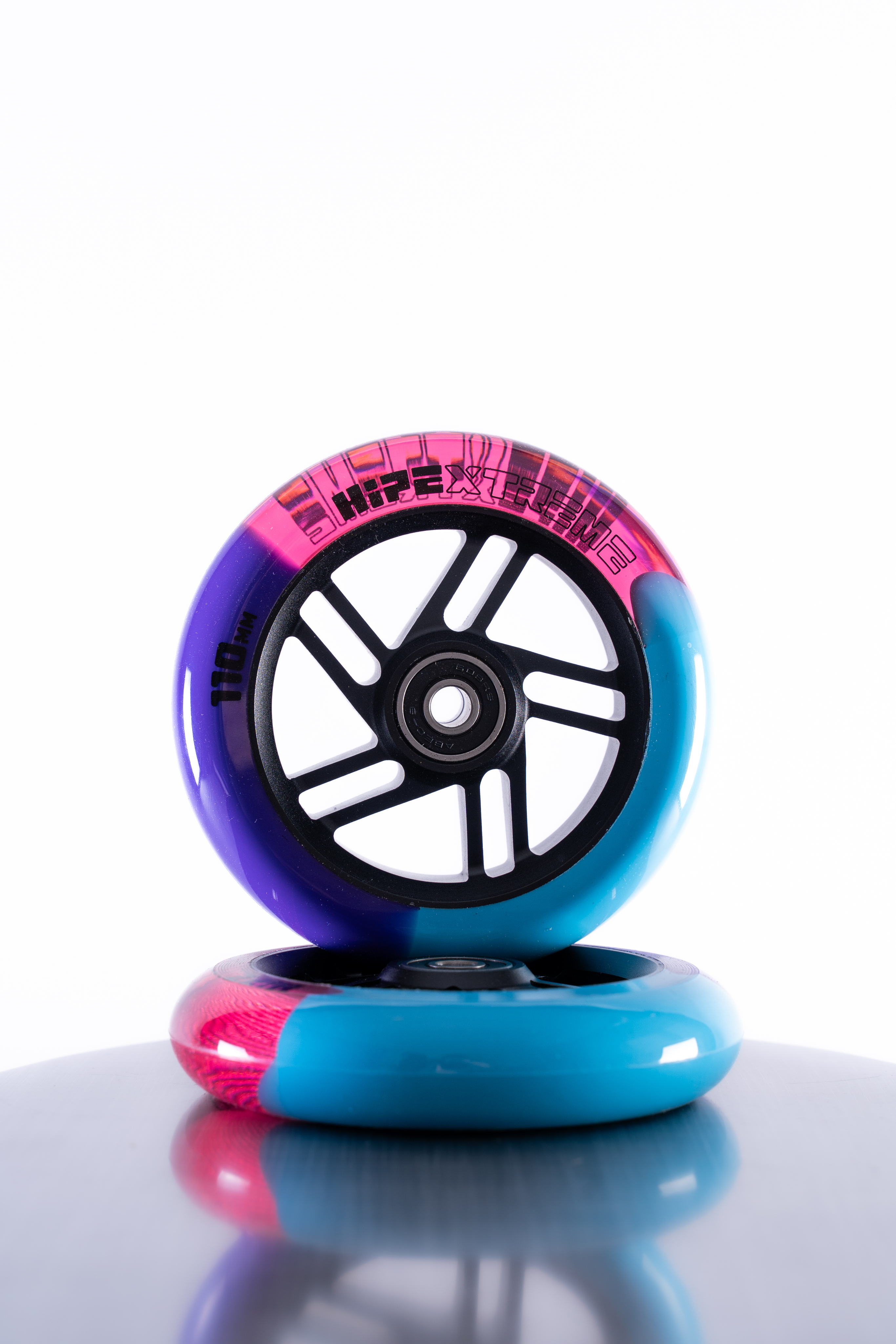 Легкие и прочные спицевые колеса от HIPExtreme, имеют необычный дизайн. Трехцветная заливка полиуретана, создает уникальный стиль для вашего самоката. В колесо установлены качественные подшипники ABEC9, которые отлично катят. А гелик (полиуретановая оболочка) с высокой степенью отскока будет отлично гасить удары. Подходят под любые вилки, подходят под хомут и черный руль. Идеально для самоката для мальчиков, девочек и подростков, а так же профессионалов. Материал полиуретан + алюминий