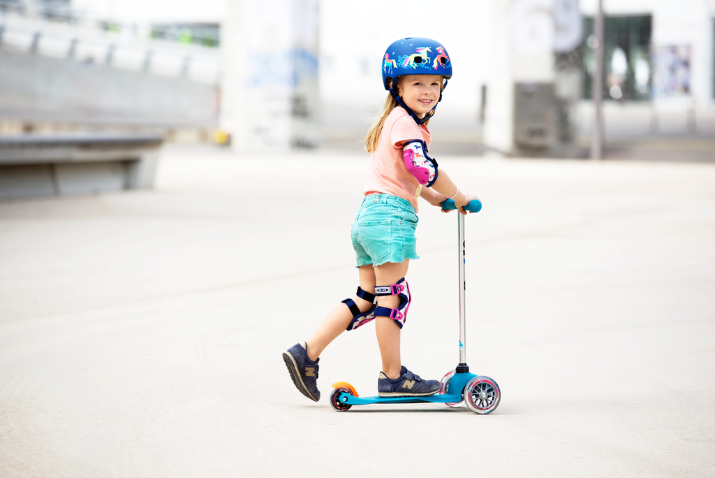 Комплект защиты обеспечивает дополнительную безопасность во время катания на самокате или беговеле.