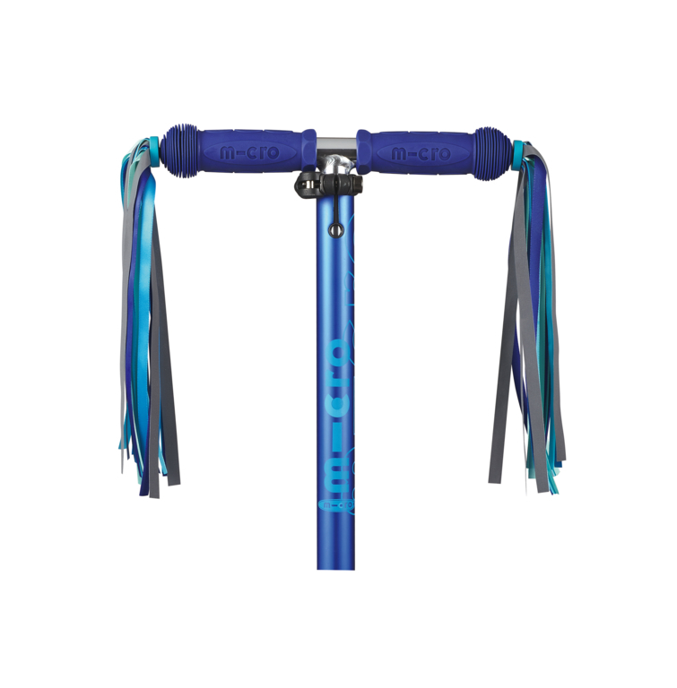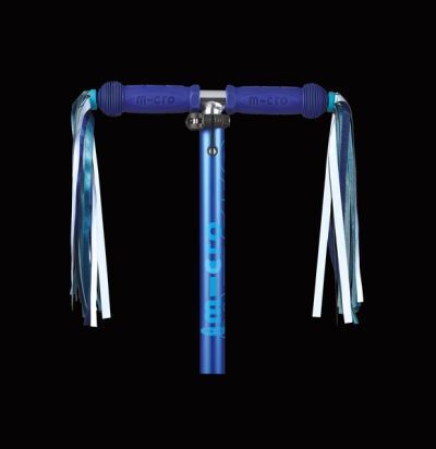Декоративные ленты на руль - отличное дополнение в коллекцию аксессуаров любимых моделей самокатов Mini или Maxi Micro! Простой механизм фиксации и яркий дизайн.Легко устанавливаются в боковые отверстия резиновых ручек Вашего самоката!