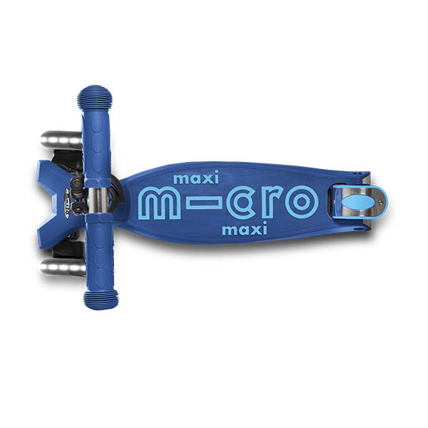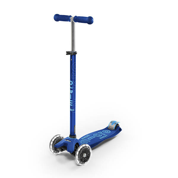 Самокат Maxi Micro Deluxe темно-синий со светящимися колёсами обеспечивает дополнительную безопасность в пасмурные дни и темное время суток. Добавьте яркости ежедневным прогулкам Вашего ребенка!