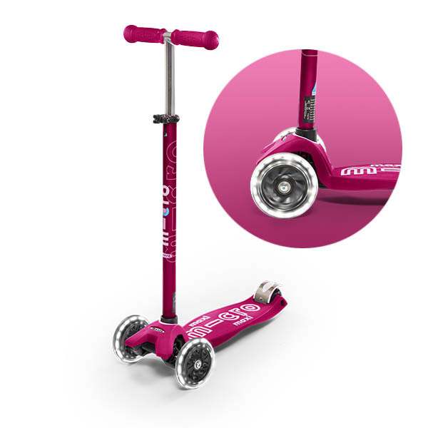 Самокат Maxi Micro Deluxe розовый со светящимися колёсами обеспечивает дополнительную безопасность в пасмурные дни и темное время суток. Добавьте яркости ежедневным прогулкам Вашего ребенка!