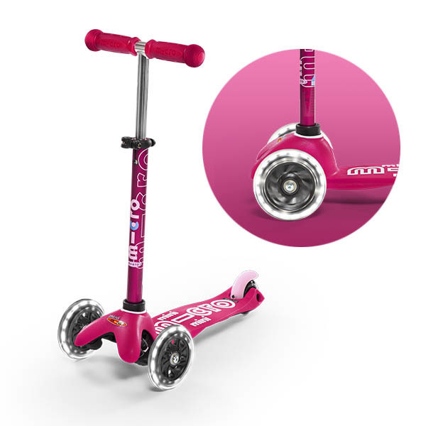 Модель самоката Mini Micro Deluxe теперь и со светящимися колёсами! Самокат, который обеспечивает максимально комфортное и безопасное катание для Вашего малыша в пасмурные дни и темное время суток. Добавьте яркости ежедневным прогулкам Вашего малыша!