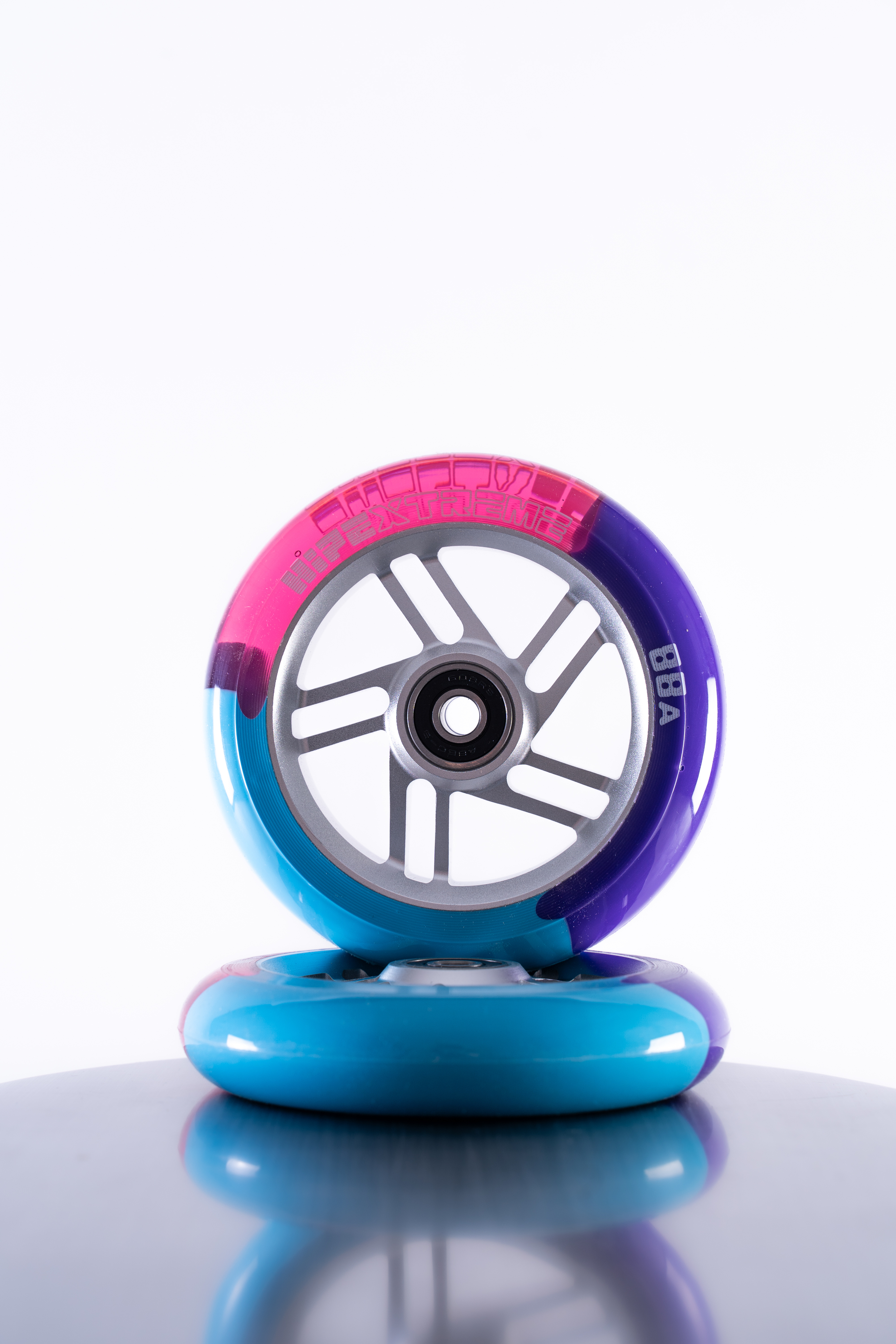 Легкие и прочные спицевые колеса от HIPExtreme, имеют необычный дизайн. Трехцветная заливка полиуретана, создает уникальный стиль для вашего самоката. В колесо установлены качественные подшипники ABEC9, которые отлично катят. А гелик (полиуретановая оболочка) с высокой степенью отскока будет отлично гасить удары. Подходят под любые вилки, подходят под хомут и черный руль. Идеально для самоката для мальчиков, девочек и подростков, а так же профессионалов. Материал полиуретан + алюминий
