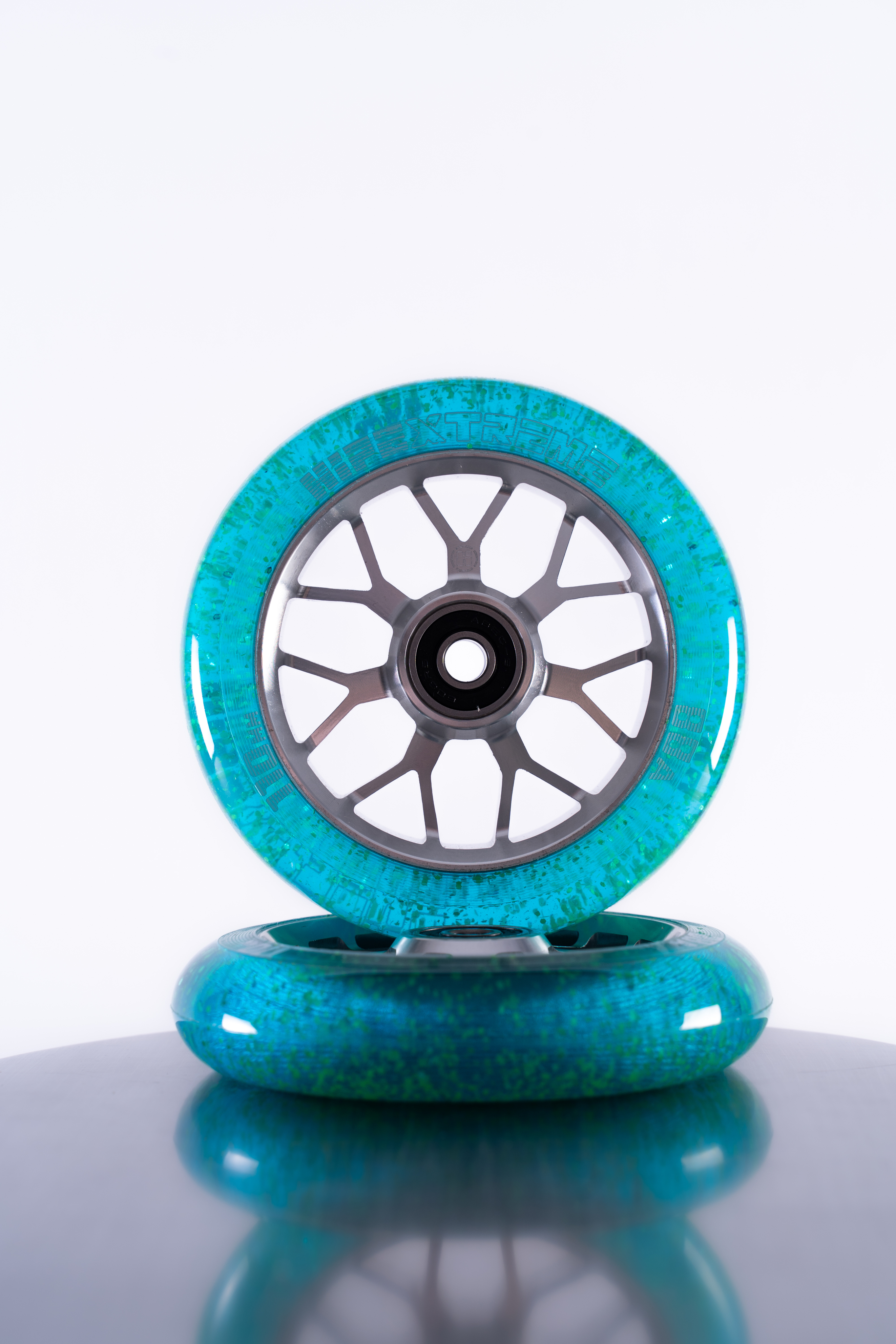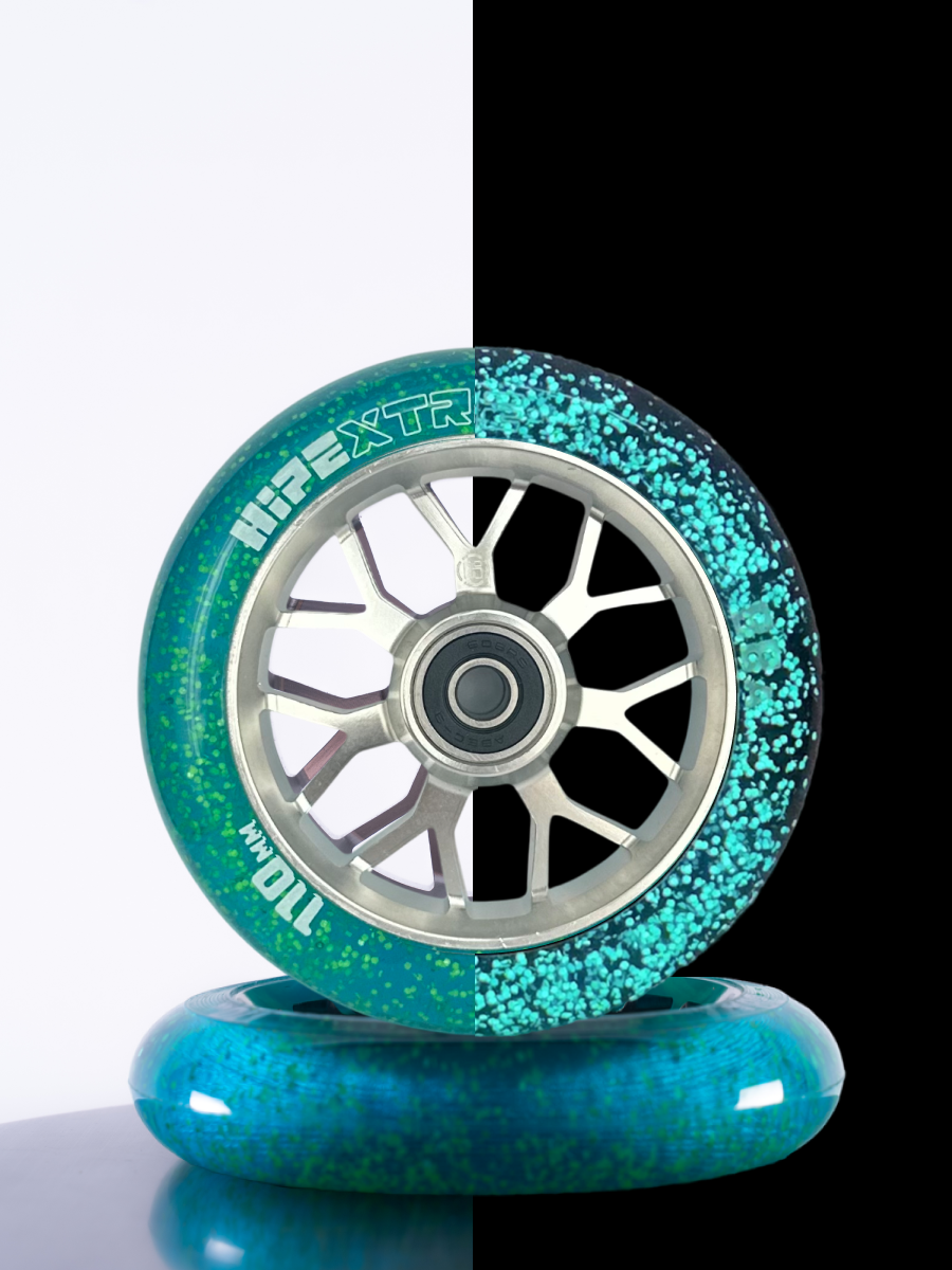 Набор колес HIPExtreme Neon Flakes 110*24 мм, серебро/голубой