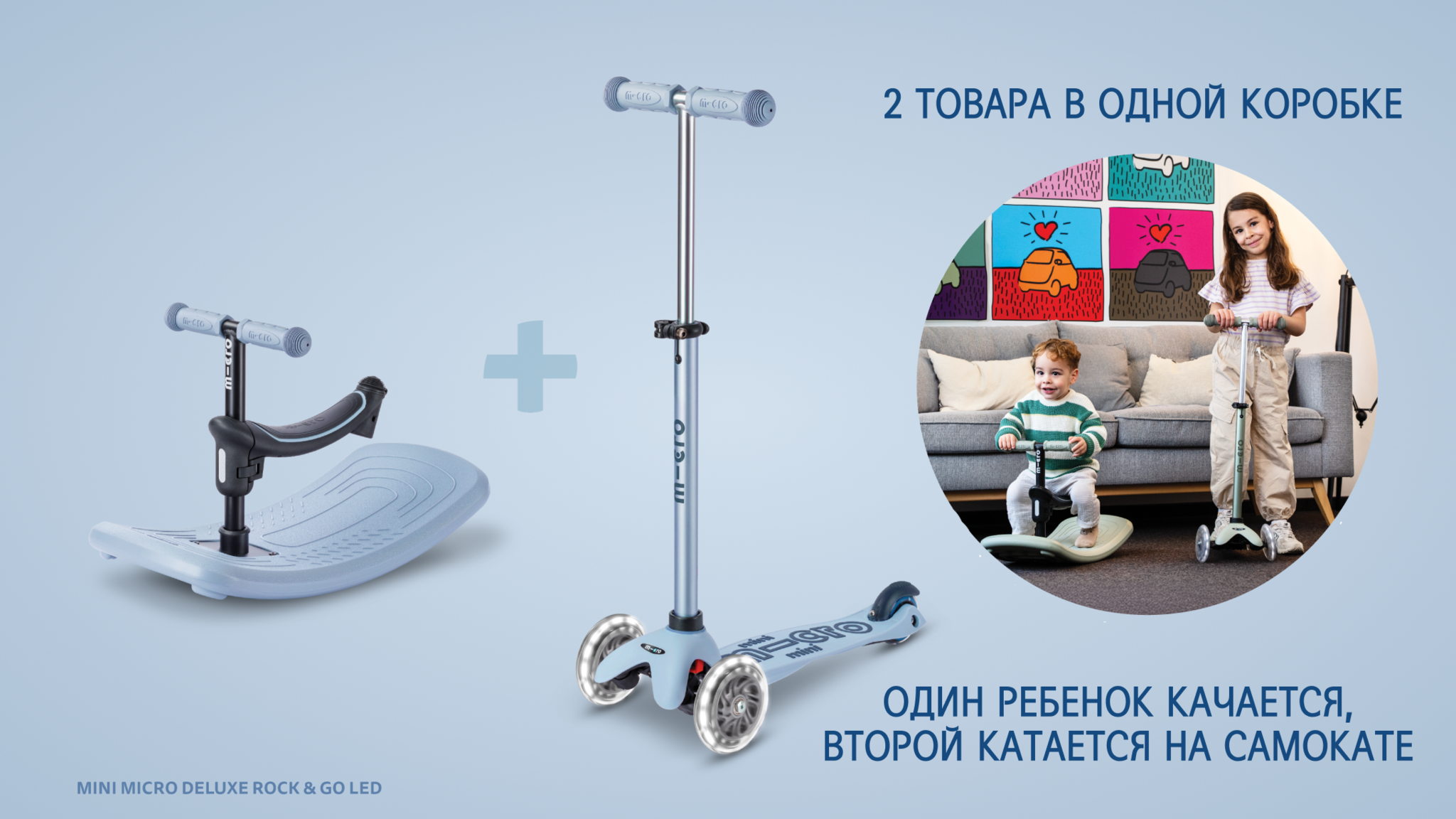 Как в помещении, так и на улице, Mini Micro Deluxe Rock & Go LED готов к любым приключениям. Это настоящий компаньон на длительный срок, который развивается в зависимости от способностей и потребностей вашего ребенка.