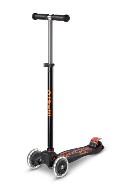 Детский трехколесный самокат Maxi Micro Deluxe черно-оранжевый со светящимися колесами от известного швейцарского бренда Micro. Универсальная модель, разработанная специально для детей от 4-х до 12-ти лет. Самокат, который зарекомендовал себя, как надежный и качественный транспорт.