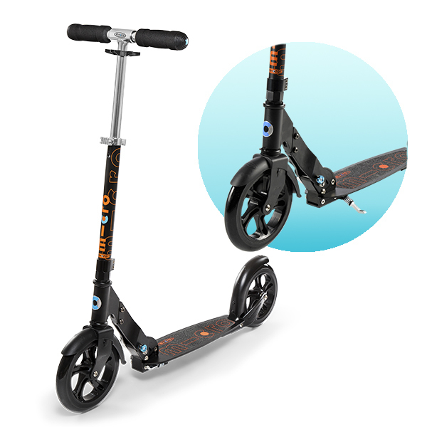 Micro Classic черный оснащен большими 200 мм колесами, что позволяет с легкостью передвигаться на большие расстояния.