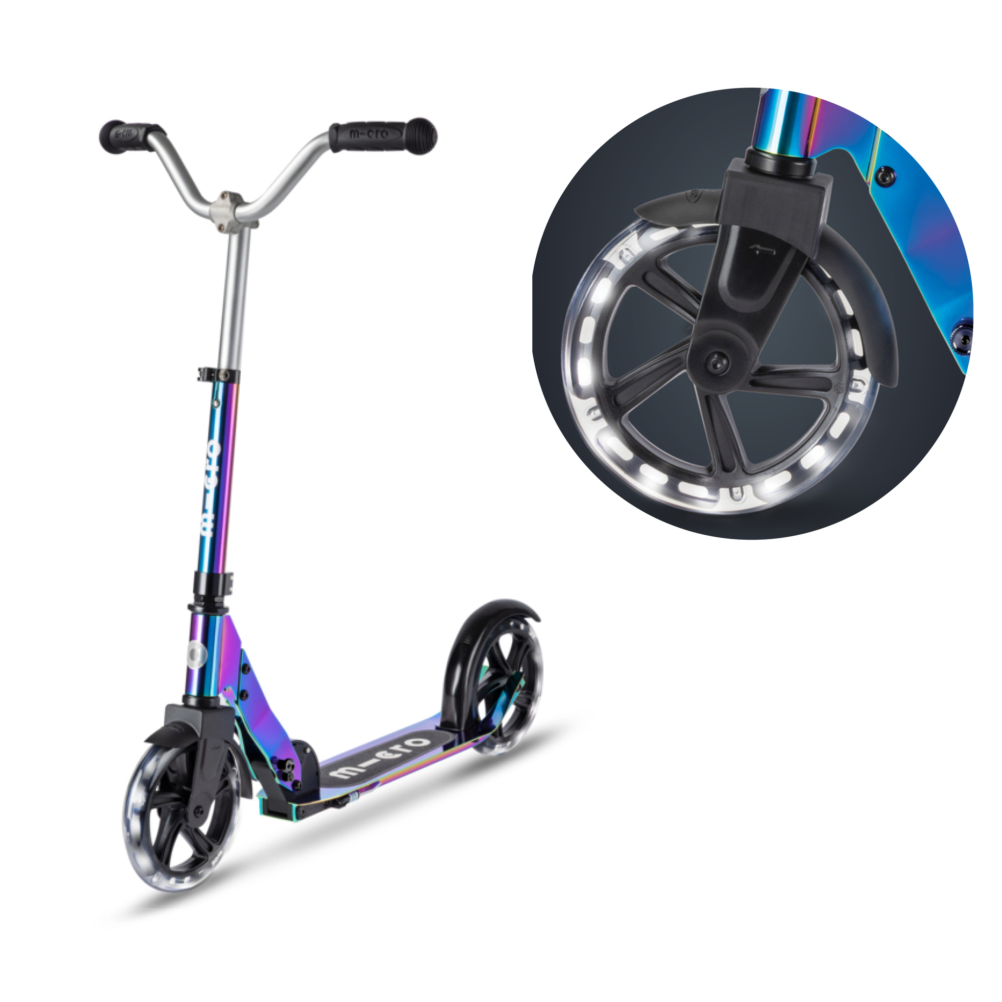 Самокат Cruiser LED неохром от известного швейцарского бренда Micro теперь со светящимися колесами.