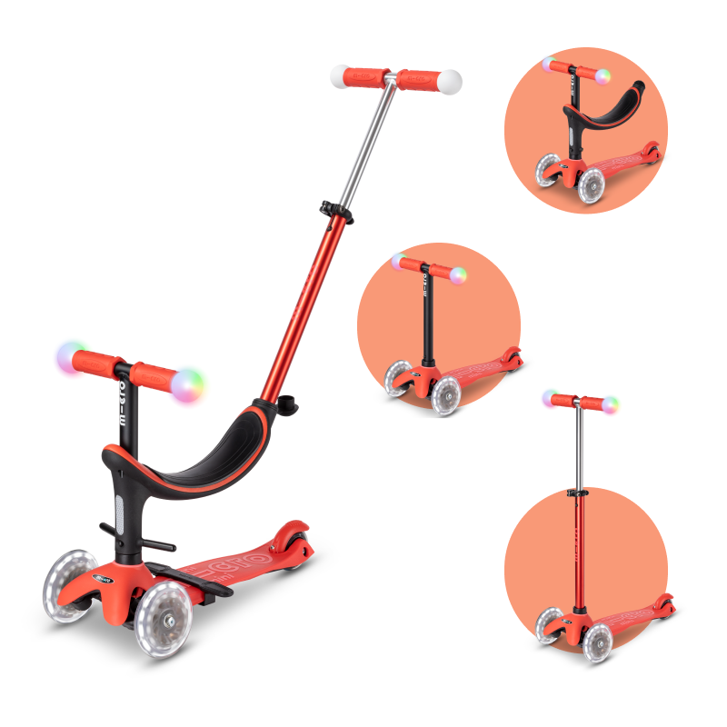 Модель самоката Micro Mini2Grow Deluxe Magic LED теперь со съёмным сиденьем и родительской ручкой! Самокат обеспечивает хорошее настроение и дополнительную безопасность в пасмурные дни и темное время суток. Добавьте яркости ежедневным прогулкам Вашего малыша!