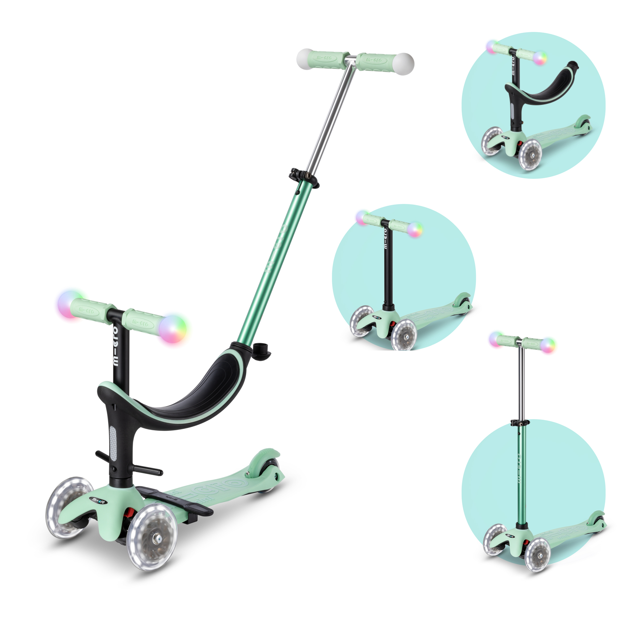 Модель самоката Micro Mini2Grow Deluxe Magic LED теперь со съёмным сиденьем и родительской ручкой! Самокат обеспечивает хорошее настроение и дополнительную безопасность в пасмурные дни и темное время суток. Добавьте яркости ежедневным прогулкам Вашего малыша!