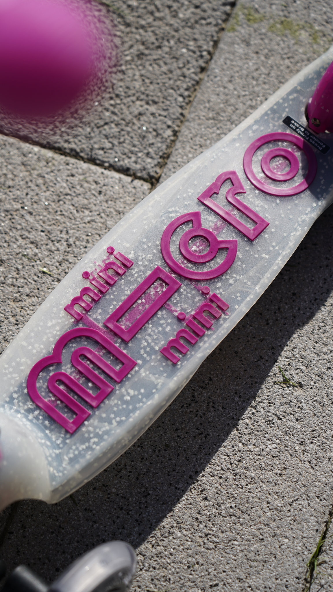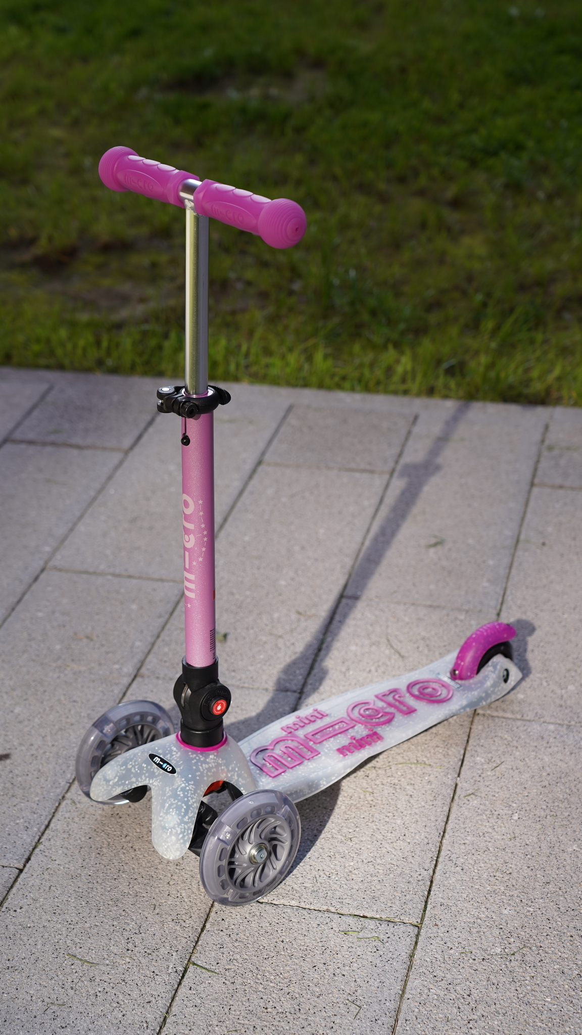 Детский трехколесный самокат Mini Deluxe Orion LED складной розовый от известного швейцарского бренда Micro.