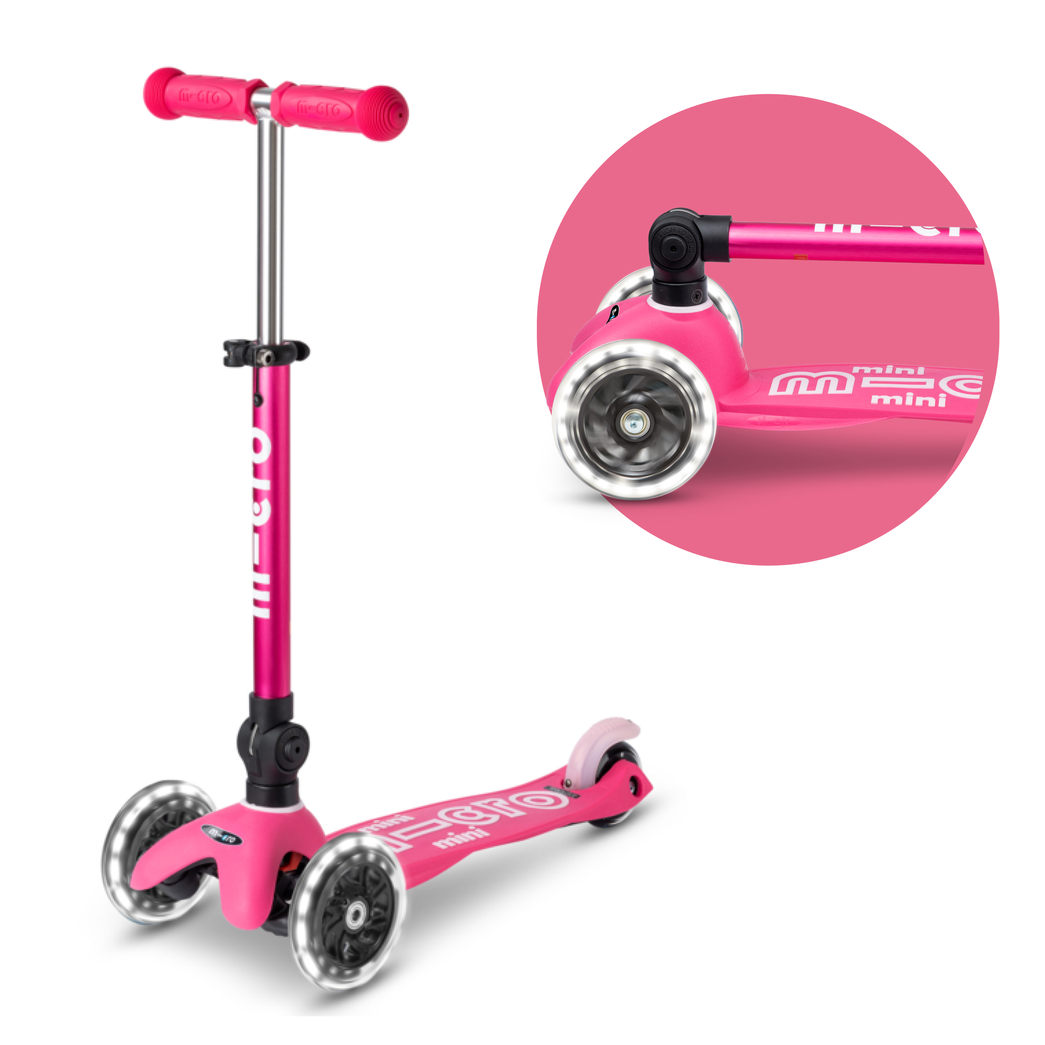 Mini Micro Deluxe складной LED Розовый складной упрощает транспортировку и хранение самоката! Удобный и надежный вариант для Вашего ребёнка! Модель обеспечивает дополнительную безопасность в пасмурные дни и темное время суток. Добавьте яркости ежедневным прогулкам Вашего ребенка!