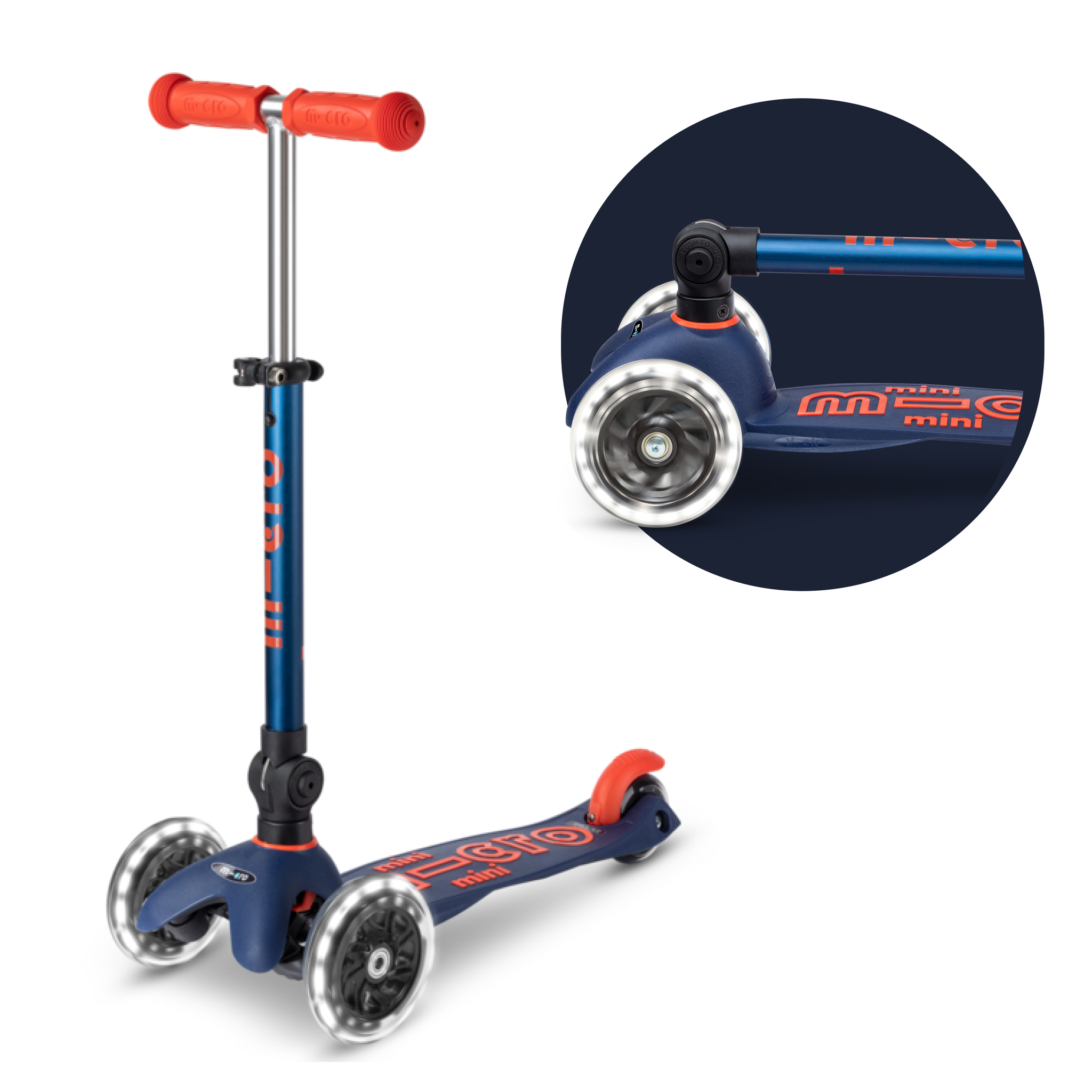 Самокат Mini Micro Deluxe складной LED темно-синий Дисконт