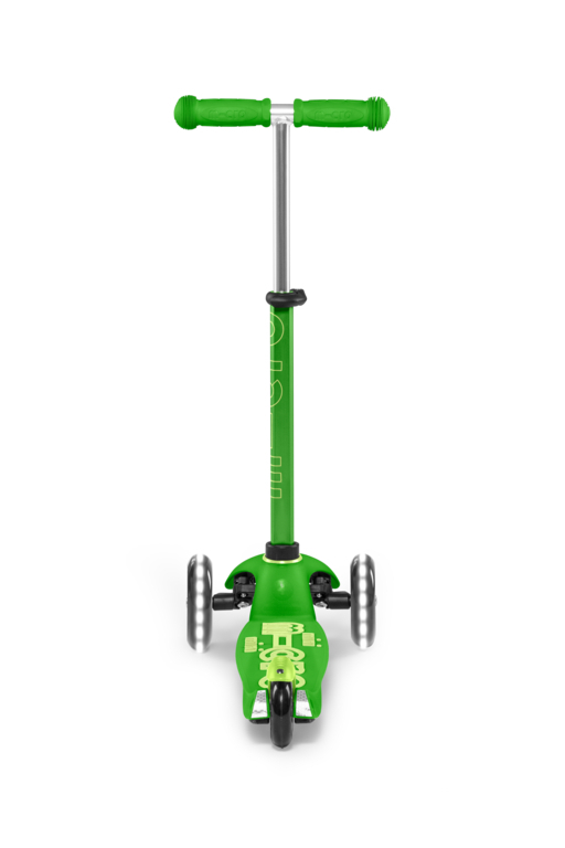 1. Детский трехколесный самокат Mini Micro Deluxe зеленый со светящимися колёсами. Модель в серии Mini Micro Deluxe помогает учиться держать баланс и развивает у ребенка координацию движения. Разработан специально для детей от 2-х до 5-ти лет. Самокат, который обеспечивает максимально комфортное и безопасное катание для Вашего малыша в пасмурные дни и темное время суток. Добавьте яркости ежедневным прогулкам Вашего малыша!