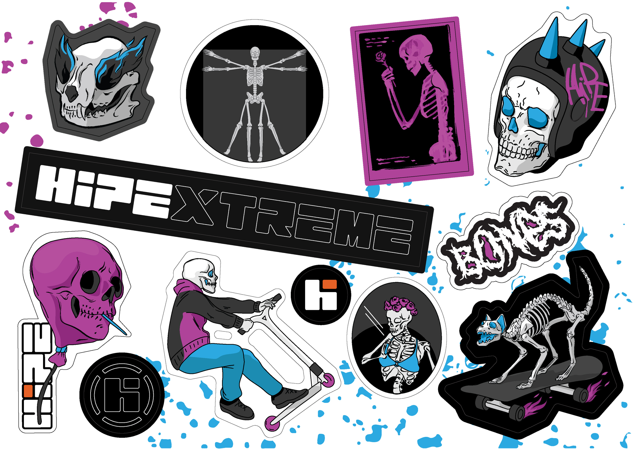 Стикерпак HIPE xtreme на самокат, трюковой самокат, беговел и шлем.