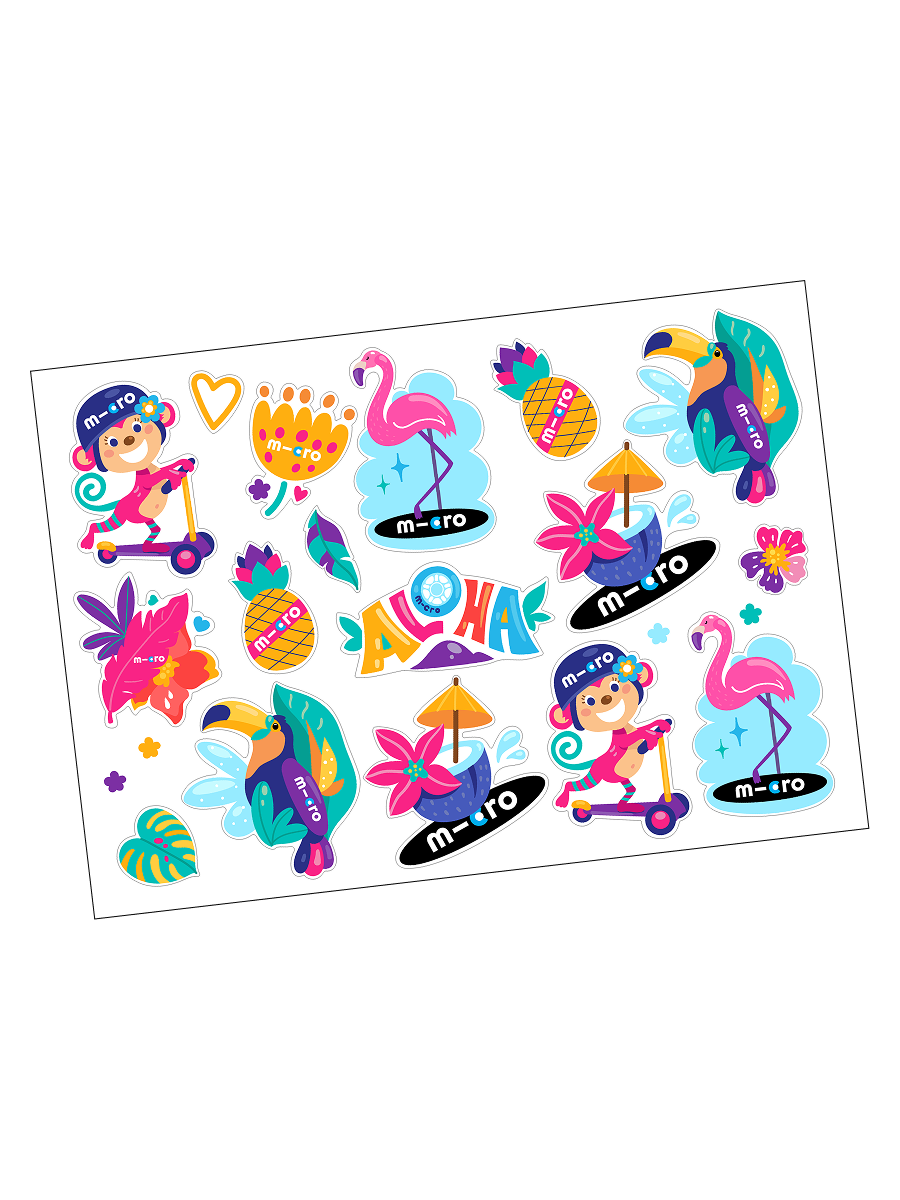 Стикерпак Micro Алоха на самокат, трюковой самокат, беговел и шлем.