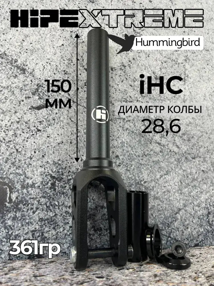 Прочная и надежная вилка для трюкового самоката от HIPExtreme с системой компрессии IHC (под руль с внутренним диаметром 28,6 мм). Подойдет для колес размером до 120мм и шириной 26 мм.
