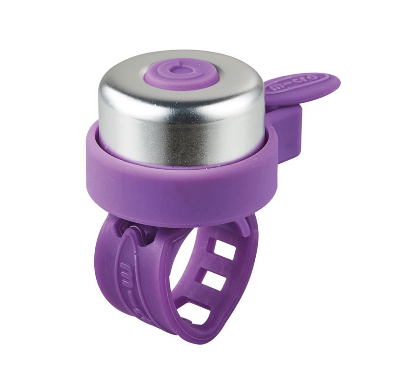Звоночек выполнен из гибкого силиконового материала, что позволяет плотно прилегать к самокату или беговелу во время катания.